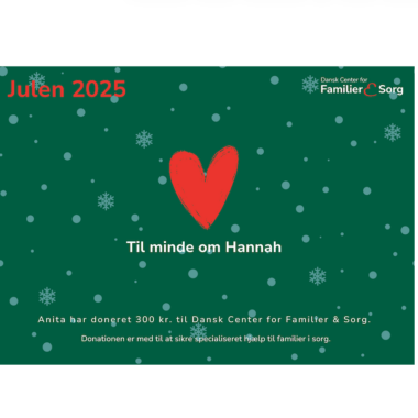 Bemærk: Fristen for julegaver, der skal nå frem inden juleaften, er d. 15. december kl. 12.00. Når du handler på vores webshop, så køber du ikke bare et produkt. Hver gang du shopper hos os, så gør du en vigtig forskel. Alt overskud fra salg går nemlig ubeskåret til vores arbejde for familier ramt af sorg, og til at sikre vores tilbud om gratis sorgterapi til forældre, der har mistet deres barn og yngre voksne, som har mistet deres partner. Du finder vores handelsbetingelser her. Bøger og pjecer Plakater Muleposer Gravlys Donationsbeviser Tilbud Medlemskab Donationer